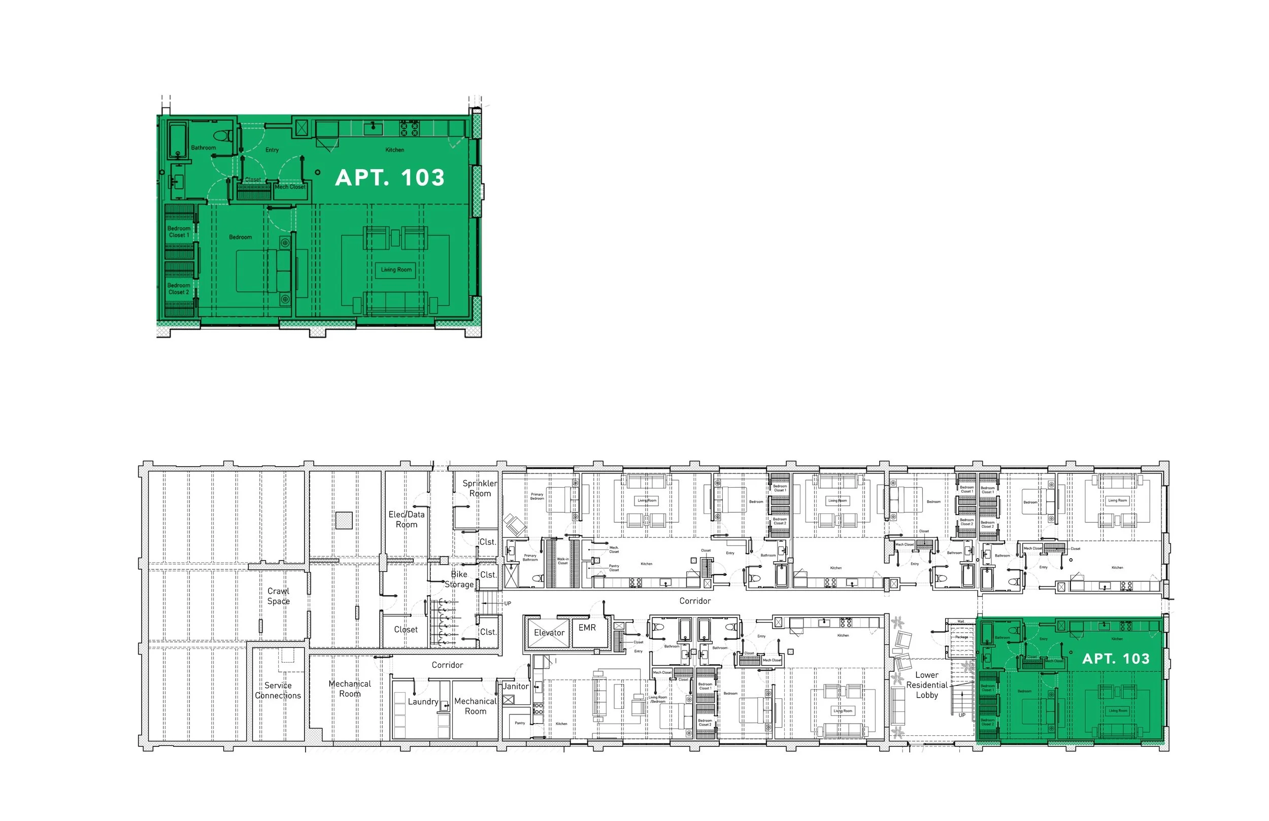 One-of-a-kind residences with open floor plans, high ceilings, expansive windows and large rooms. At the heart of every residence is a well-appointed kitchen. Custom finishes and textures abound: finely milled cabinetry, high end kitchen appliances, keyless electronic entry, designer light fixtures, Energy Star Rated. The apartments also share a lobby and out-door garden space.